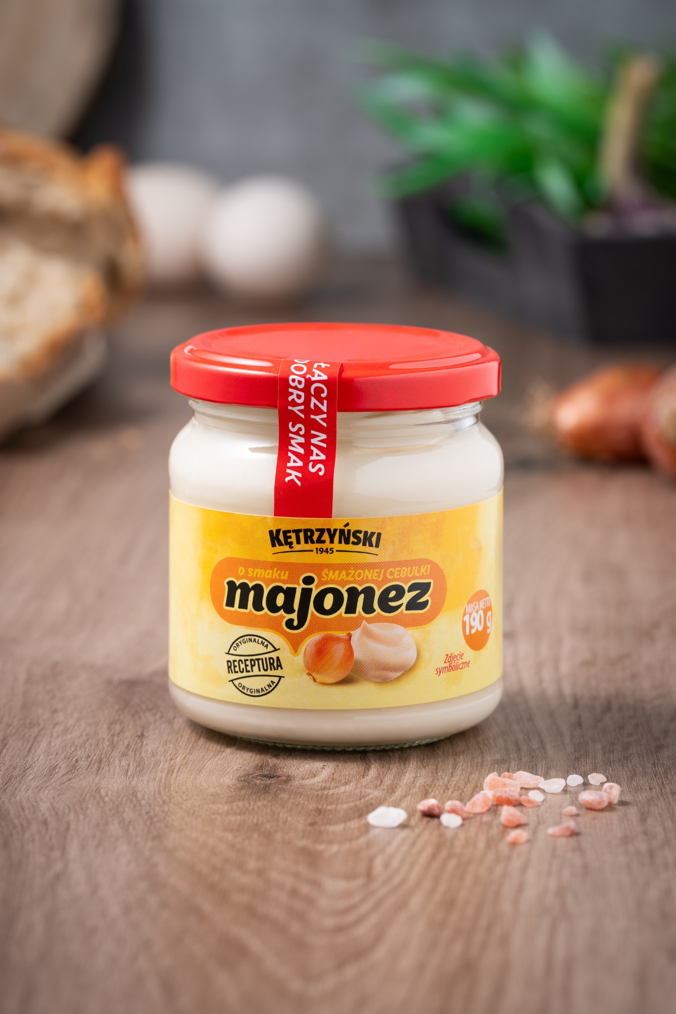 to najnowszy produkt z serii smakowych majonezów Spółdzielni Pracy Produkcyjno-Handlowej w Kętrzynie i jedyna taka propozycja na polskim rynku. Ma gęstą, jednolitą i kremową konsystencję. Powstaje w oparciu o wyjątkową recepturę wzbogaconą bogatą mieszanką przypraw, w tym aromat smażonej cebulki który podbija podniebienia miłośników dobrej kuchni. Nadaje daniom wyrazistego smaku, który sprawia, że nawet dobrze znane potrawy z dodatkiem majonezu zaskakują i zachwycają w nowej odsłonie. Doskonale pasuje do pieczywa, sałatek, mięs, jaj.